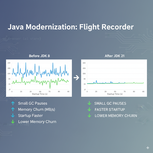 Another quiet win came from observability. The team turned on the built-in flight recorder to capture short profiles under real traffic in both Java 8 and Java 21. They saw shorter pauses with the default collector, faster startup, and less memory churn under peak. Numbers help people say yes. Those small graphs bought patience from product and finance while the team finished the move.
